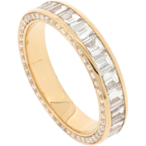 C’est donc une pierre précieuse intemporelle pouvant être portée au quotidien. Afin de vous proposer un travail de haute qualité, nous réalisons votre bague de mariage sur mesure en posant chaque diamant baguette un par un avec minutie.