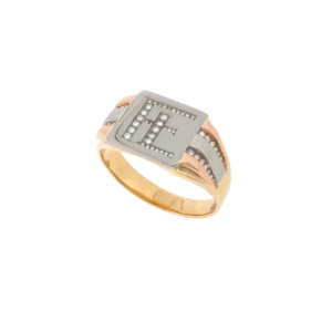 Chevalière en or blanc et jaune avec diamant