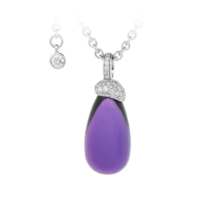 Au cours de la création de ce bijou, notre expert gemmologue a souhaité imaginer un pendentif alliant raffinement et robustesse. L’améthyste est alors apparue comme la pierre précieuse, la plus appropriée pour cette réalisation.