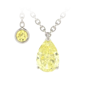 Pendentif en or rose 18K serti d’un diamant jaune poire et d’un diamant jaune rond.