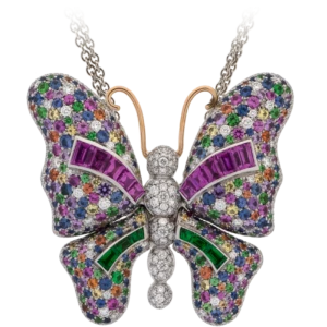 Bijou intemporel et facilement adaptable, le pendentif papillon multicolore se glisse aussi bien sur une chaîne en or rose qu’en or blanc. Grâce à sa couleur éclatante et sa robustesse, ce bijou s’accorde parfaitement avec de nombreux autres bijoux et tenues vestimentaires.