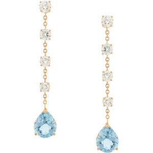 18K pink gold earrings set with 2 aquamarines and 8 white diamonds.