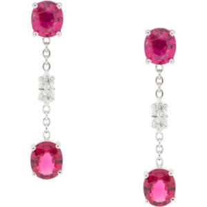 18K white gold earrings, set with 4 ovales spinels and 2 marquise diamonds.