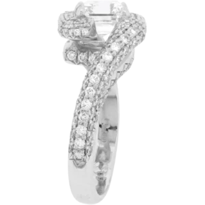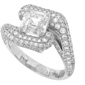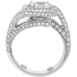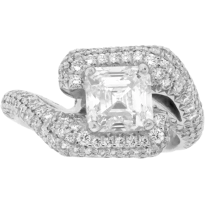 18k white gold wedding ring set with 1 asscher-cut diamond and 186 diamonds.