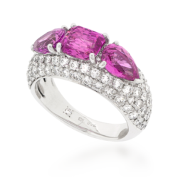 Le pavage diamant ajoute non seulement de l’éclat et de la luminosité à la pièce, mais peut aussi servir à mettre en valeur la pierre centrale de la bague. Cette technique s’utilise alors aussi pour l’ornement de l’anneau des bagues.