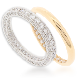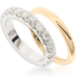 Le premier critère à prendre en compte pour créer un ensemble harmonieux entre les deux alliances est de choisir une couleur d’or similaire. Notre expert gemmologue Benjamin Mizrahi vous propose des bague de mariage d’exception en or rose et or blanc.