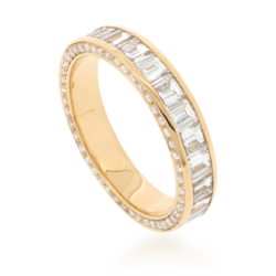 L’alliance diamant baguette est un hommage à la pureté et à l’équilibre. Les diamants baguette sont sertis côte à côte pour former un ruban lumineux, créant un effet miroir saisissant.